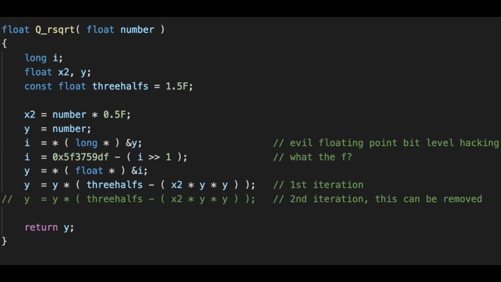 Prefer readability over performance, although you can probably do both. Gone are the days when John Carmack applied magic numbers to perform Fast inverse square root (even Carmack left good comments though, as you’ll see below). Nowadays, thank god, we don’t have to do shit like this anymore. Unless you work for a really crazy company where every nanosecond, every nanometer, and every byte of L1 cache is imporant, stop writing code like you have a cucumber up your ass. Not kink shaming, you do you, but your code should be readable by all human beings, not only beings who like self exploration in the form of fruit (and yes, cucumber is also a fruit just like tomatoes, fuck you). On a side but relevant note, knowing that cucumbers and tomatoes are fruit is knowledge, but understanding that they do not belong in a fruit salad, that is wisdom.